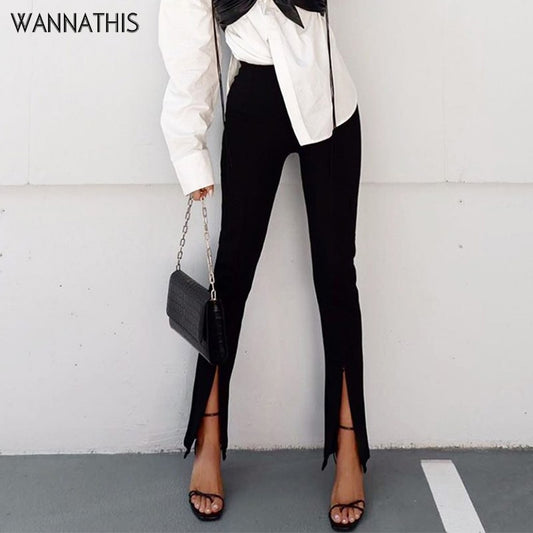 WannaThis Sexy Casual Pencil Pants Women Trousers Autumn Elegant High Waist Hem Zipper Split Slim Pants 2020 Fashion Streetwear