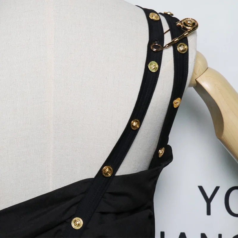 Women Night Club Party Dress Asymmetrical Pins Deco Spaghetti Strap Off Shoulder High Waist Sexy Mini Dress